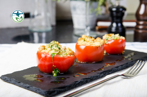 Try these Greek Gemista stuffed tomatoes! Juicy, oven-baked tomatoes filled with savory beef, cauliflower rice, and aromatic herbs make a fresh, flavorful, and satisfying meal perfect for summer or meal prep.