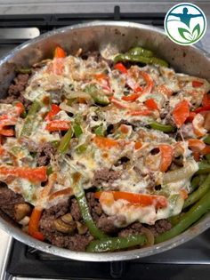 Enjoy all the flavor of a classic Philly cheesesteak with this simple, fun, and interactive recipe by Dr. Cindy Tanzar. Juicy ground beef, caramelized peppers, onions, mushrooms, and melted provolone come together for a satisfying, clean-eating meal. Perfect for weeknight dinners, family meals, or a maintenance-friendly dish everyone will love!