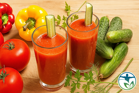 This savory Tomato Juice Smoothie by Dr. Cindy Tanzar is a refreshing, fiber-rich alternative to traditional veggie juices. Quick, customizable, and ideal for standard, vegan/vegetarian, and maintenance plans!