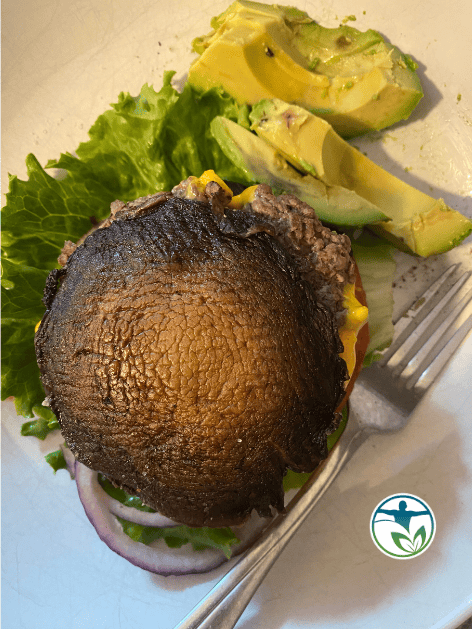 MIRIAM’S BURGER ON A PORTOBELLO MUSHROOM BUN