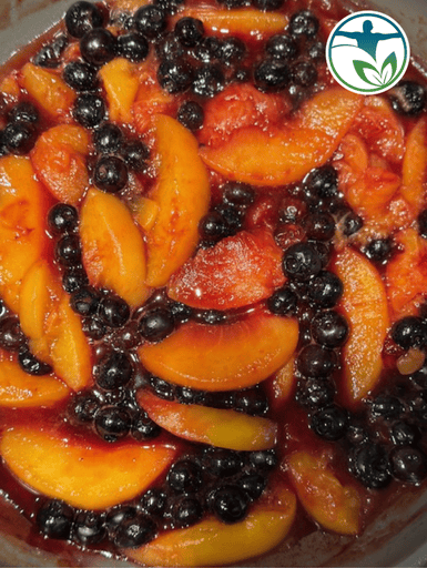 Sweet peaches and juicy blueberries simmered with cinnamon and vanilla create a delicious compote by Dr. Cindy Tanzar. Easy, flexible, and plan-friendly!
