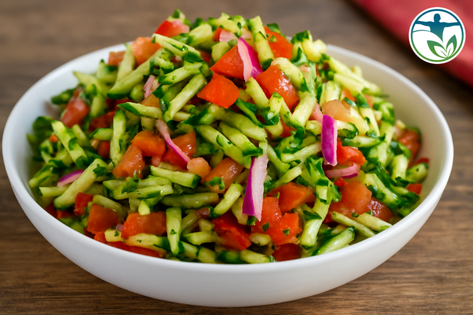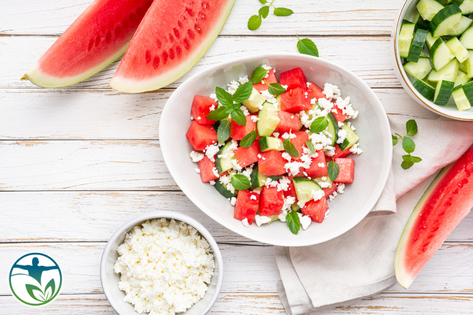 Cool off with a fresh Watermelon Salad featuring juicy melon, crisp cucumber, and a zesty dressing. Easy to make and perfect for healthy summer eating.