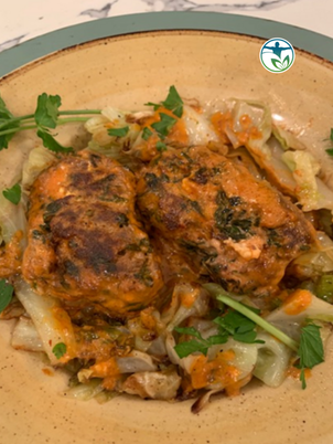 BURGER LOAVES WITH CREAMY TOMATO GRAVY AND FRIED CABBAGE