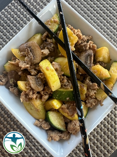 This flavorful Szechuan Zucchini Stir Fry from Dr. Cindy Tanzar is a quick, flexible recipe that fits Standard & Maintenance plans. Use ground meat or tempeh and enjoy a spicy, satisfying dish that covers your protein, veggie, and fat in one delicious meal.