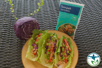 These Asian Tempeh Lettuce Wraps with Peanut Sauce by Dr. Cindy Tanzar are high in plant-based protein, fresh, and full of flavor — a Genesis Health Solutions favorite for the Vegan/Vegetarian Plan.