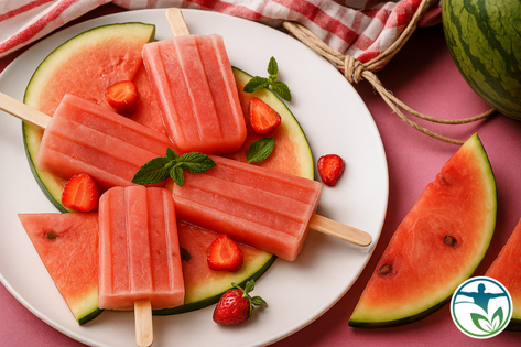 Dr. Cindy Tanzar’s Watermelon-Strawberry Popsicles and Granita are fruity, refreshing, and plan-friendly—ideal for summer days and family fun.